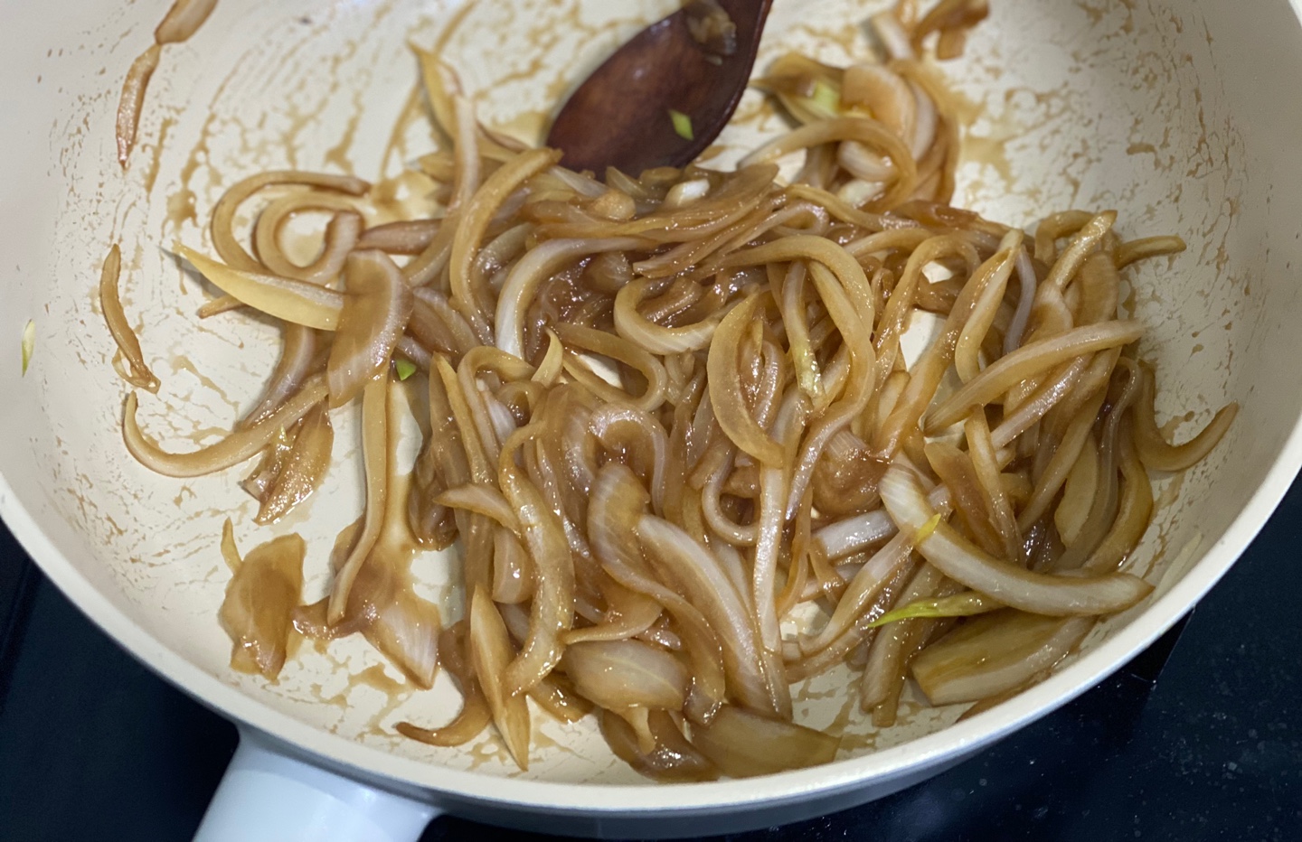 이렇게 소스가 양파에 완전히 배어들때까지 졸여주세요!